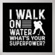 Hockey theme poster with white silhouette hockey player with hockey stick and white text that reads I Walk On Water What's Your Superpower?