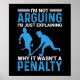 Hockey Player Penalty poster with white and blue text on a black background reads I'm Not Arguing I'm Just Explaining Why It Wasn't a Penalty! Hockey humour poster sure to be a hit with any hockey player also features blue silhouette hockey players.