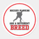 You're a hockey player! You're tough! You're so tough, in fact, you're a different breed, entirely. Celebrate your skills with this cool design. Features a hockey player in silhouette within a white circle and the phrase "Hockey Players are a Different Breed". Great for game day party favors and decoration; celebrating a hockey team win or championship.