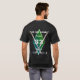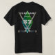 Personalized Hockey T-Shirt with small graphic on front and large graphic on back, white number and black text. Easily add personal information at the edit prompt with 4 text boxes. How about your favourite team name, your name, favourite number and perhaps a team motto?!!! Available on any t-shirt Zazzle sells. Designed for you by HAMbyWhiteGlove. - Shirts with black text sold separately. Shown on a black t-shirt with green blue background effect.