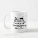 Brew up some magic this Halloween with this "It's just a bunch of Hocus Pocus" witch quote coffee mug. Decorative typography lettering is accented with spooky scrolls, twinkling stars, witch hat, black cat, and a witch's broomstick. Black design colour can be modified.