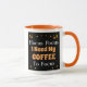 Hocus Pocus I need my coffee to focus coffee mug. Black and orange with stars and moons.