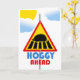 A cute, bright, and colourful hedgehog road crossing sign with clouds and a sun in the background. Thinking of You, paper greeting card. Hedgehog and hedgeHUGS themed card. Hoggy Ahead, text on the cover. Inside message can be personalized before checkout. Art, image, and verse copyright © Shoaff Ballanger Studios.