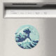 This is a drawing of blue, blue and aquamarine extreme sea waves with foam and spray, based on the work of Katsushiki Hokusai (1760-1849).