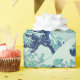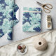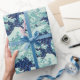 This is a pattern of blue, cyan and aquamarine sea extreme waves with foam and splashes, based on the work of Katsushika Hokusai (1760-1849).