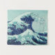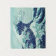 This is a drawing of blue, blue and aquamarine extreme sea waves with foam and spray, based on the work of Katsushiki Hokusai (1760-1849).
