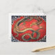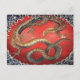 vintage Japanese illustration of a dragon on a red background with blue waves