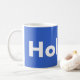 Famous Blue background with “Hola” printed in white & waving hand at the side.