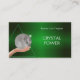 Hands holding a Picture of a Quartz Crystal Ball Healing Crystals Business Card Template. White Quartz Crystal Ball sphere image. Vibrant Photograph closeup of Large white Quartz crystal ball with and arm and hand graphic holding the ball, on a green background. Perfect for psychics, crystal stone healing, and mineral semi-precious gemstone suggestions. Photography card that you can customize colour, add your text and more. Great gift idea for those that work with crystal balls, gemmology, readings, and fortune tellers. If you are looking for a realistic crystal ball that you can customize, consider this design. Photography by ChrisJo, all rights reserved.