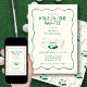 A modern classic with a playful twist, this hand-drawn golf-themed first birthday invitation blends minimal design with charming, illustrated details. Featuring clean green line art—golf cart, clubs, flag, and ball—this design brings a lighthearted “hole-in-one par-tee” theme to life while keeping a refined, stylish look. The soft cream background paired with rich green tones creates a timeless, gender-neutral palette perfect for both boys and girls. The front layout keeps all event details crisp and easy to read, framed by a subtle wavy border for added character. Flip it over to reveal a coordinating pattern of hand-drawn golf icons, adding visual interest and a cohesive designer feel. Easily personalize with your child’s name, date, time, and location to create a meaningful keepsake for this milestone celebration. Ideal for golf-loving families, backyard parties, or country club gatherings with a modern edge.