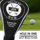 Elevate your golf game with our Customized Golf Club Head Cover! This creatively crafted head cover boasts a unique design that truly stands out. Imagine two coordinating crossed golf clubs set against a crisp white background encircled by an additional ring. Inside this outer circle, you’ll discover the words “Hole in One,” commemorating that remarkable achievement, along with the date. Right below the clubs, there’s a designated area where you can proudly showcase your golf course club’s name and specify the exact hole where your hole-in-one occurred. Whether you’re celebrating a special moment or simply expressing your passion for the sport, this head cover is a stylish choice. Customize it further by adding your two or three initials in elegant white lettering on a ribbon, completing our exclusive crossed clubs motif design! All colours in this unique design may be customized!