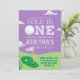 A colourful 'Hole in One' Golf themed first birthday invitation to help celebrate your little girl's first birthday. Colour palette features shades of green against a purple sky. Blue background colour is editable and can be changed to match your party theme.