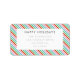 A beautiful and cute diagonal Christmas candy stripe return address label in striking shades of red, green, blue, and pink. Designed in a modern Scandinavian “scandi” style, this cheerful pattern brings a playful yet sophisticated look to your festive mail. The “Happy Holidays” greeting, family name, and address can all be personalized to create a unique label that reflects your personal style. Perfect for pairing with our matching candy stripe holiday card collection, this versatile design adds a bright, joyful touch to your Christmas stationery. A fun and modern way to make your envelopes stand out with color, charm, and a touch of Scandinavian simplicity.