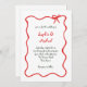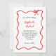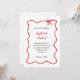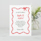 This chic and elegant holiday wedding invitation features a red hand drawn, wavy illustrated frame with a bow, and stylish red and green handwritten script on a white background. Perfect for a Parisian or French style wedding during the Christmas season.
