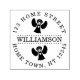 A circular personalized self-inking stamp design featuring two angels above and below your family name and encircled by your address details. Ideal for adding an extra hand stamped touch to your holiday cards.