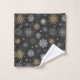 This bath towel set is shown in a festive holiday snowflake print design.