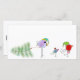 Bird family celebrating the Holidays and taking home their Holiday Tree. Mom bird leads the way with her purse in wing with Dad dragging the tree behind him. You can personalize this whimsical card by adding you own text.