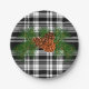 Holiday Black White Plaid with Pine cone detail Paper Plate