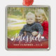 Holiday Blessings | Holiday Ornament with Photo - Red. Elke Clarke © Other styles and colours available at www.zazzle.com/epclarke. White script font with the word " Blessed" with hearts photo overlay design with a red ombre effect. A perfect way to showcase your treasured family photo. Find matching holiday greeting card in our shop.