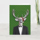 Merry Christmas, Happy Holidays and Season's Greetings Whimsical Deer Decor. This lovely green garland pattern pillow is adorned with a buck in full antlers, wearing a santa hat and black tuxedo.