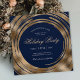 Create elegant holiday invitations for your company with this Festive Navy and Gold Glitter Frame Business Holiday Party Invitation Design. Featuring a professional layout with faux gold glitter round frame, sophisticated calligraphy script fonts over a seasonal navy blue background, this winter event invite is perfect to use for your Christmas Staff Party, Holiday Cocktails Party, End of Year Celebrations and more! Simply customize the text to suit your function.