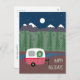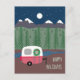 This Christmas postcard has a cute little RV with a holiday wreath on its door. It is camped next to a river with a pine forest and snow-capped mountains behind it, and a starry sky with a full moon. The lower right side has the words "Happy Holidays" and on the back side is your return address, message and signature. This is also available as a flat card and as a folded card.