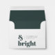 Send your holiday greetings in bold style with this modern pre-addressed Christmas envelope featuring the retro quote “merry & bright” in deep forest green typography on a clean white background. The design includes a complementary feature colour inside for a polished, festive finish. Perfect for pairing with matching holiday cards, this trendy and cheerful layout blends nostalgic charm with a fresh modern feel. Personalize the greeting, name, and address to create a unique envelope that adds personality and joy to your Christmas correspondence. Ideal for families, couples, or small businesses looking for a fun, eye-catching, and contemporary design that stands out beautifully this holiday season.