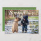 This single photo card is great for showcasing a family photo. Gold confetti at the bottom is not actual foil - it's an inexpensive alternative. Put your custom message on the back with more details.