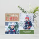 Affordable custom printed holiday photo cards with simple templates for customization. This modern design has a festive mix of typography in red, green and white on a faux kraft paper background. The wording says "Holiday Cheer". Personalize it with your photos and add your family name and the year. Reverse side has space for additional photos and text. Use the design tools to edit the text, add more photos and create a unique one of a kind Christmas photo card design.