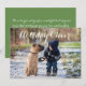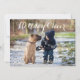 This single photo card is great for showcasing a family photo. Gold confetti at the bottom is not actual foil - it's an inexpensive alternative. Put your custom message on the back with more details.