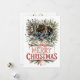 Celebrate the magic of the season with this festive Christmas card, featuring a decorative border of pine branches, holly, berries, and ornaments. The central photo is fully customizable—upload your own joyful family portrait to make it uniquely yours. Beneath the image, “MERRY CHRISTMAS” shines in stylized red and white lettering, adorned with ribbon and pine accents. On the reverse side, a heartfelt Christmas greeting and the sender’s name complete this warm and personal holiday message.