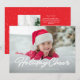 Holiday cheer simple script two photo card