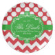 Red and white dots and chevron features family monogram. Personalized with family names. Great for the holidays and makes a great gift!