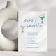 A cheerful and modern holiday cocktail invitation featuring playful hand-drawn martinis in pink and green. The headline stands out in casual script, with space below for party details in clean blue type. Great for festive gatherings, girls nights, or seasonal soirées. This invite can be customized for your celebration.