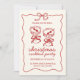 Celebrate the season in style with this festive Christmas cocktail party invitation. Featuring hand-drawn red cocktail glasses tied with bows and framed with a delicate border, this elegant cream-and-red design sets the perfect tone for your holiday gathering. Personalize with your event details to create a warm, welcoming invite your guests will love.