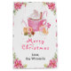 This fun and festive gift bag can be personalized with your name, relation or title. It features a watercolor cup of hot cocoa and whipped cream, gingerbread cookies and beautiful pink poinsettia flowers. The text combines handwritten script and sans serif fonts for a stylish and modern look. This is perfect for Christmas gifts and party favours.