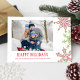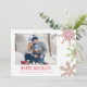 This design features holiday Christmas modern simple cute, minimalist snowflake red and green, clean trendy photo,1 one family picture, a happy holiday unique cool whimsical, simple and minimal, a modern elegant simple trendy, with simple family photo traditional, winter seasonal design snow, a Christmas holiday photo cards