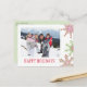 This design features holiday Christmas modern simple cute, minimalist snowflake red and green, clean trendy photo,1 one family picture, a happy holiday unique cool whimsical, simple and minimal, a modern elegant simple trendy, with simple family photo traditional, winter seasonal design snow, a Christmas holiday photo cards, A budget friendly holiday postcard