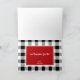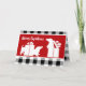 Two holiday Dachshunds ready for Christmas and playing in the presents. Festive red with white playful puppy silhouettes accented with black and white buffalo plaid is sure to be a dog lover favourite. Personalize greeting on both the front and the inside of card to suit.