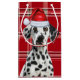 Dog lovers will adore receiving or giving this cute and funny holiday gift bag featuring an adorable Dalmatian wearing festive accessories on a red plaid.
