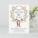 Holiday Wreath Decking The New Halls Moving Announcement Card with Pattern Back in Red and Green