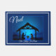 This doormat features the deep blue tones of the manager scene with text of Noel The King Is Born on it. Borders of White and royal blue.