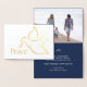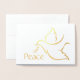 Wish family and friends a simple gift of peace for the holidays with an elegant dove one photo folded greeting card. All wording on this template (including "Peace" on front) is simple to customize, making it suitable for Christmas, New Years, Hanukkah and Rosh Hashanah. The navy blue, white and gold foil design features a mourning dove carrying an olive branch, modern calligraphy typography and 1 picture of your choice. Family and friends will love displaying this stylish personalized card.