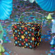 This favour box is shown in a festive holiday colourful stars print.