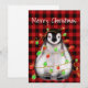 Cute Holiday Penguin wrapped up in Red and green festive Christmas lights. Original illustration by H Cooper-