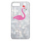 An illustration of a bright pink flamingo wearing a festive Santa hat on a background of silver bokeh lights accents this iPhone 7 Plus Case, making it the perfect accessory for the holidays.