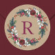 Holiday Floral Christmas Wreath Monogram Classic Round Sticker