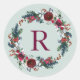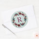 Holiday Floral Christmas Wreath Monogram Classic Round Sticker