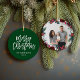 Custom Christmas ornament with a green and red watercolor floral wreath. Personalize it with your family photo and add your name, the year, or other custom text on the back below the "Merry Christmas" hand-lettered calligraphy script. Use the design tools to edit the background colour, change text fonts and colours or add more photos to create a one of a kind keepsake holiday photo ornament.