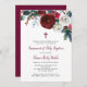 Affordable custom printed baby girl Baptism invitations. This pretty Christmas design has a watercolor floral border with burgundy and cream flowers, holly berries and winter greenery. Personalize the design with your child's Baptism party details. Reverse side has space for additional text or photos if needed. Click Customize It to choose any background colour and edit the text fonts and colours to create unique one of a kind Christening invitation for your baby girl.